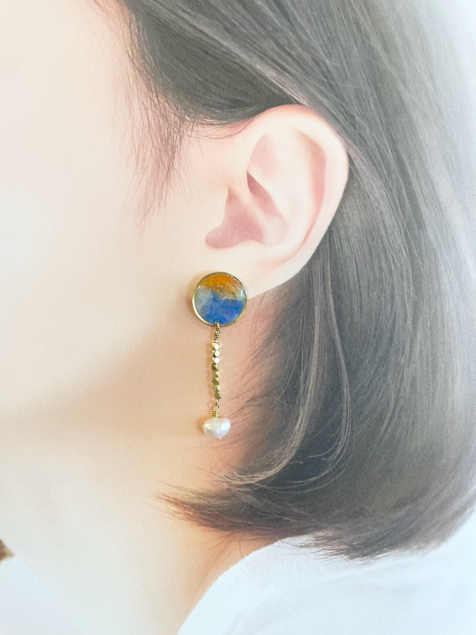 海洋プラスチック・ロングピアス パール LP-04