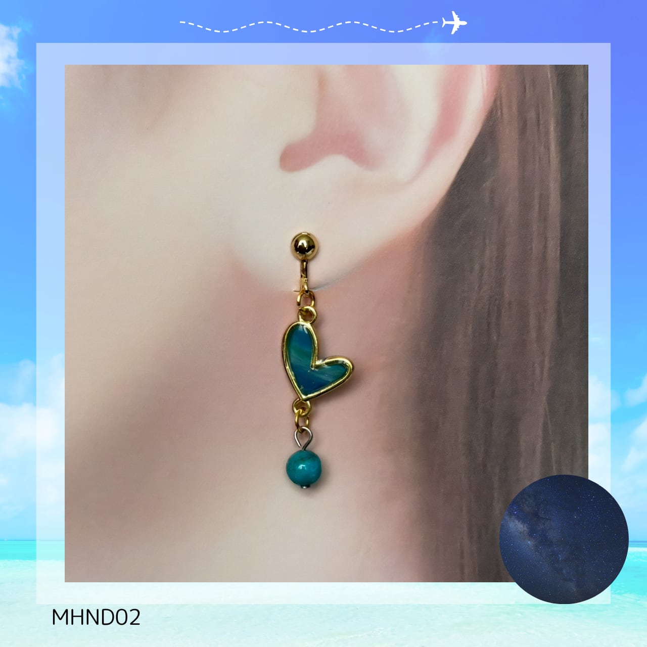 海を想い、星を想い、 まるで八重山の夜空を耳元に宿すような特別なピアス。 天然石は在庫限りのため、なくなり次第終了となります。