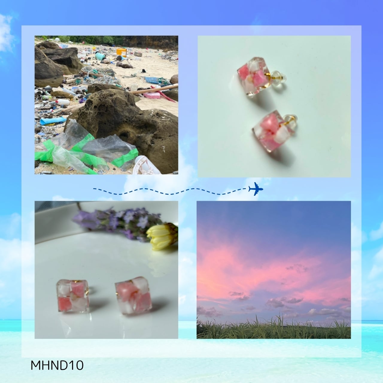 by UPCYCLE ARTIST MIHANADA 旅する魔法のジュエリー 八重山 『ニライカナイの夕暮れ』 スクエアピアス MHND10